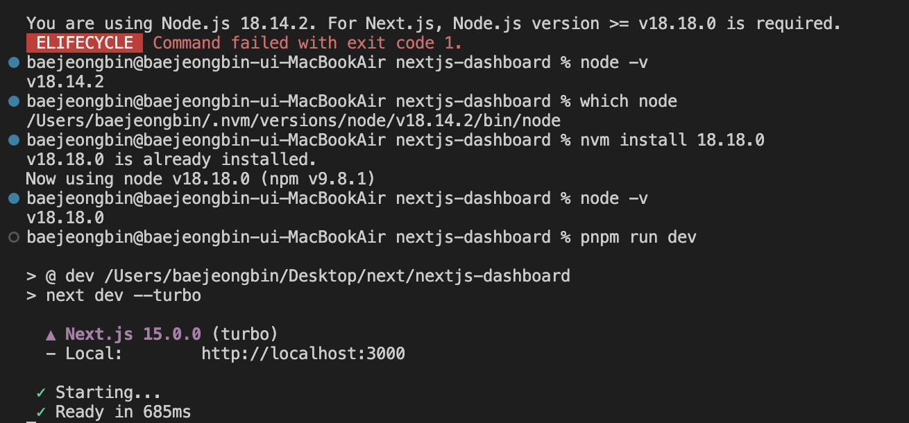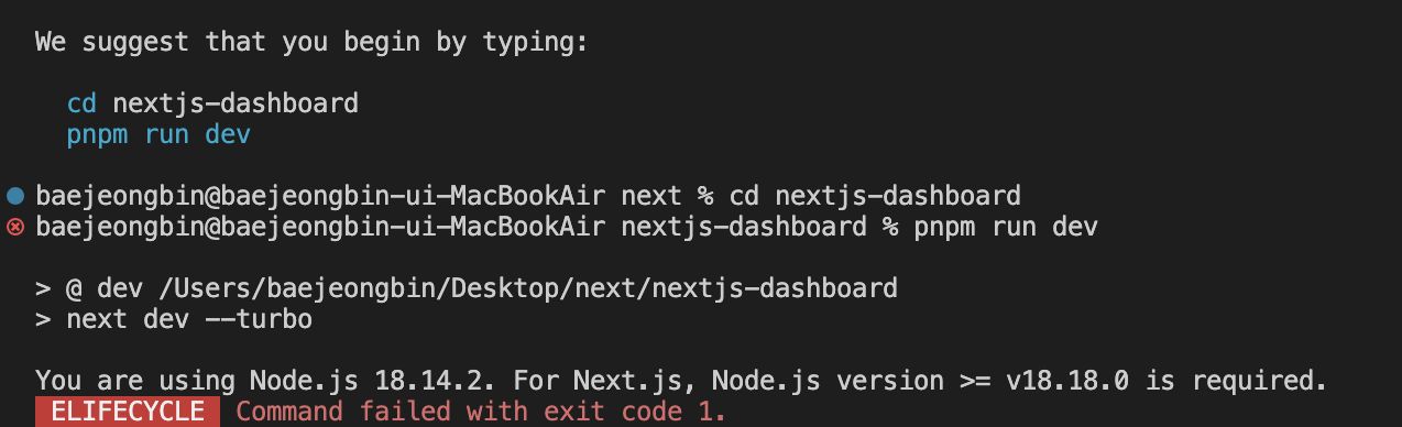 여기서 주의 할 점 !! Node.js 버전이 18.18.0 이상인지 확인